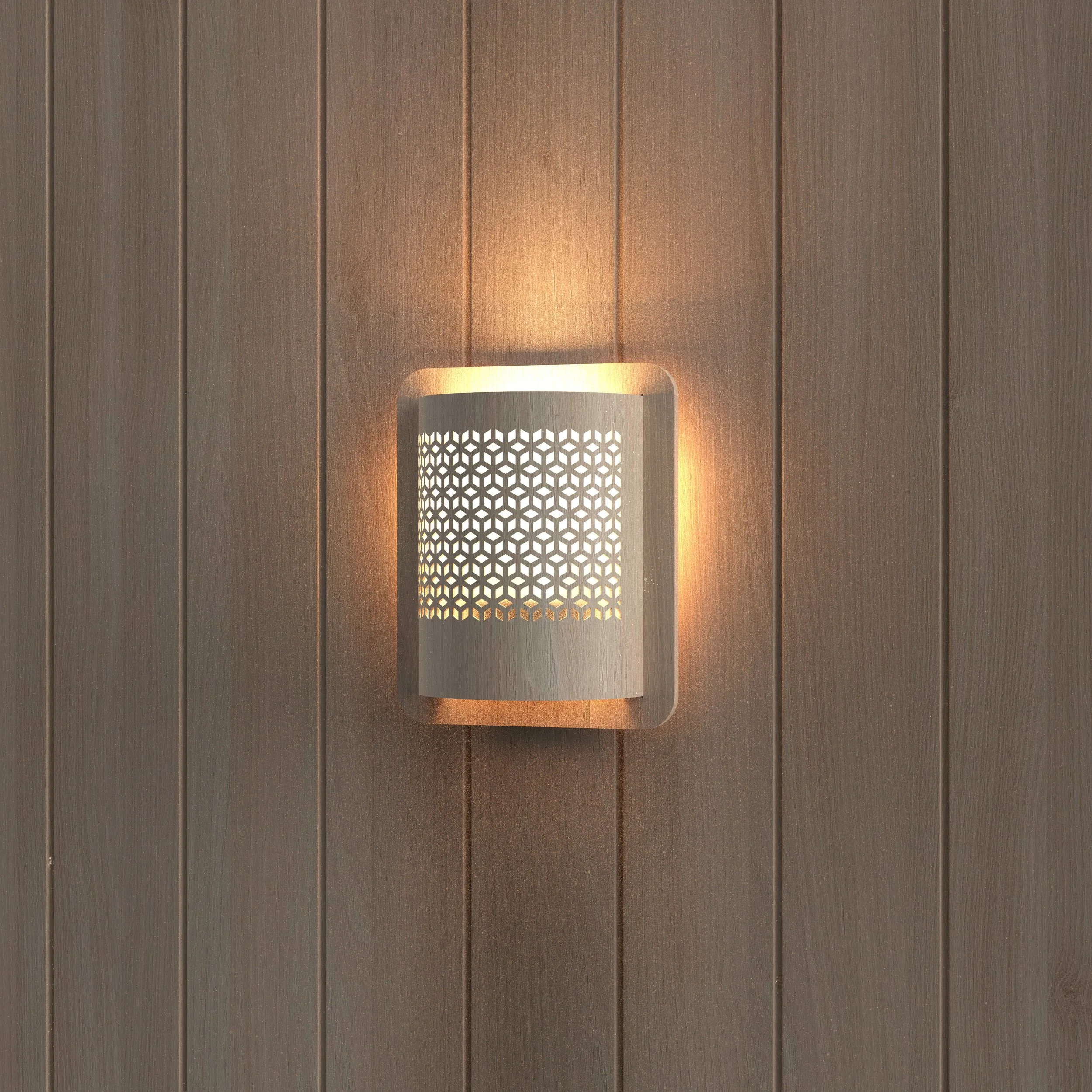 Die Saunaleuchte Clara besticht durch ihr zeitloses Design und einen dekorativen Holzschirm mit elegantem Muster. Das durch das Holz strukturierte Licht schafft eine besonders warme und einladende Atmosphäre.