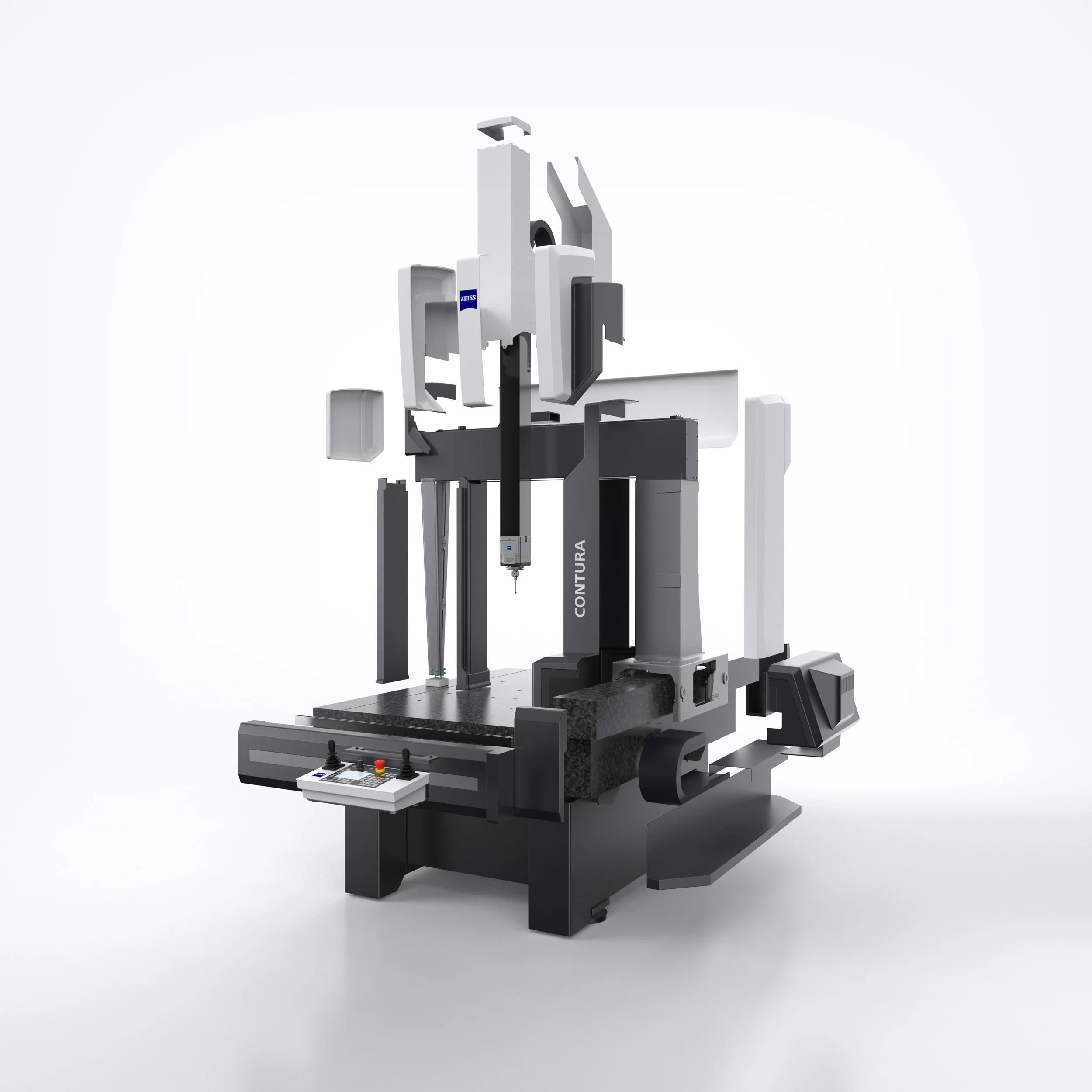 Die ZEISS CONTURA ist eine Brücken-Koordinatenmessmaschine für taktile und optische Messverfahren. Sie bietet durch ihr modulares Sensorsystem die Möglichkeit, verschiedene Messtechnologien schnell zu wechseln und so unterschiedlichste Geometrien in einem Durchgang zu erfassen. Die hochsteife Brückenkonstruktion mit Keramikführungen und Luftlagern sorgt für konstant hohe Messgenauigkeit, auch bei schnellen Achsbewegungen. Unterschiedliche Messvolumen stehen zur Verfügung, um sowohl kompakte Bauteile als auch großformatige Werkstücke präzise zu prüfen.